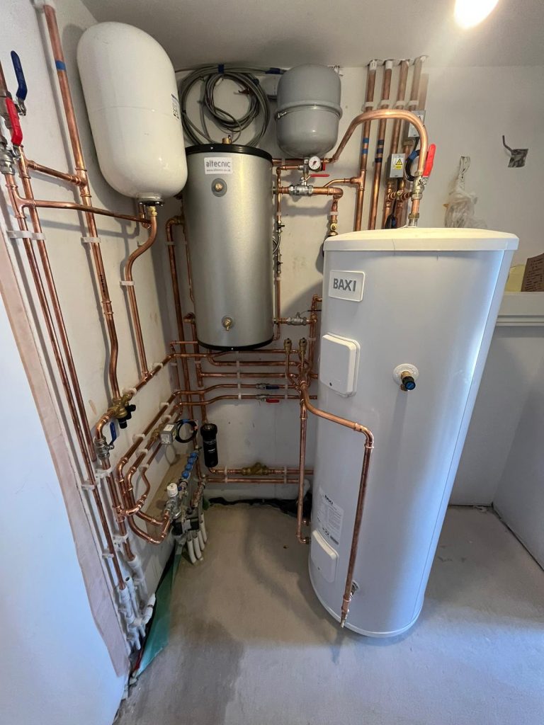 When choosing a hot water cylinder for your air source heat pump, it’s important to consider the size of your home and your hot water needs. Being qualified installers, we can help you choose the right cylinder and ASHP for your exact needs – now and into the future.